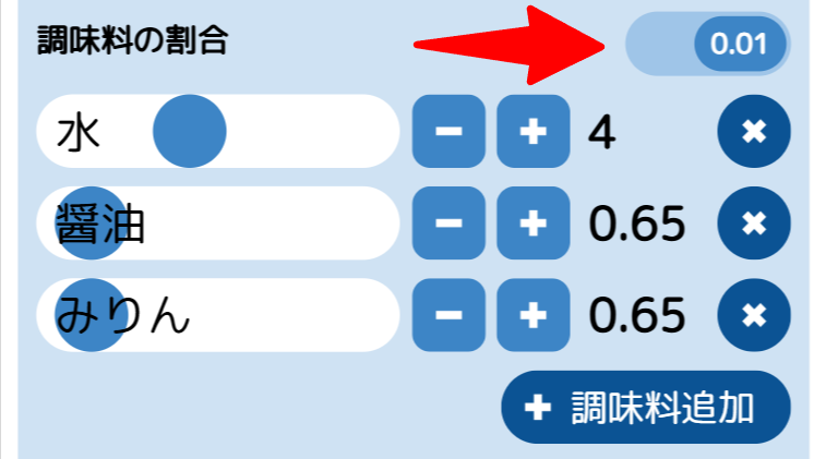 調味料の割合を0.01刻みで指定できるようになりました